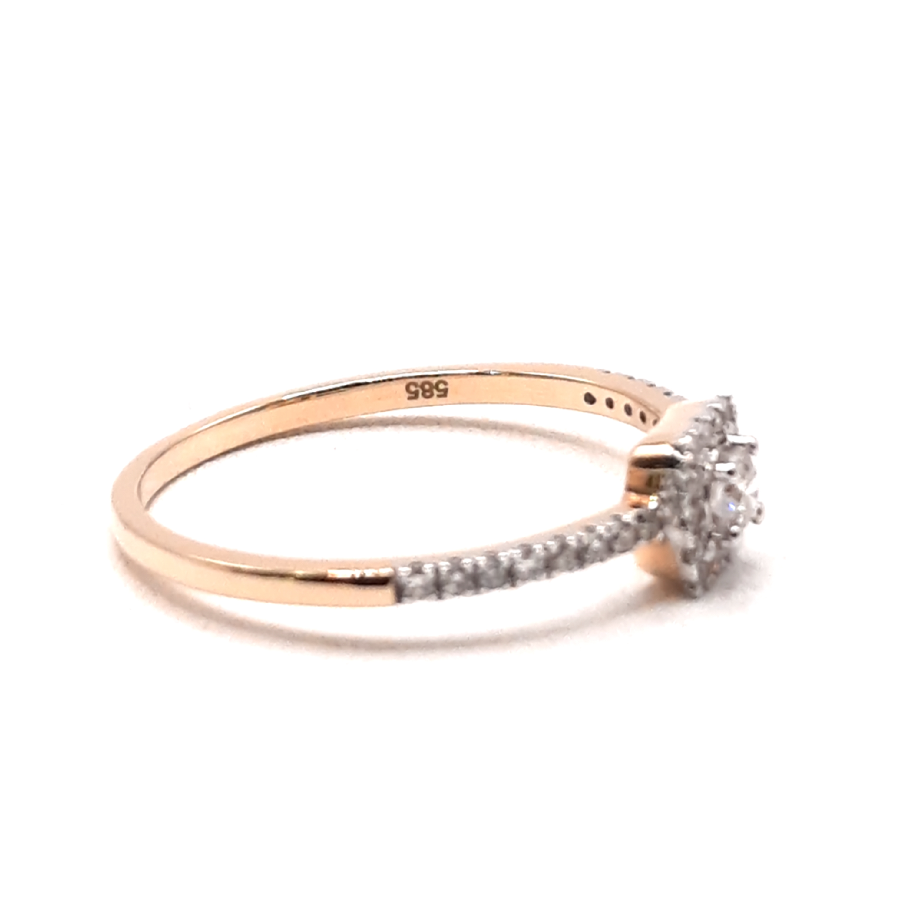 Deze prachtige verlovingsring van modelnummer 00002529 is vervaardigd uit 14-karaats goud en heeft een elegante goudkleurige afwerking. De ring is versierd met 30 briljant geslepen diamanten van SI1-zuiverheid en G-kleur. Draag deze verfijnde ring als een tijdloos symbool van liefde en toewijding. Perfect voor een onvergetelijk aanzoek.