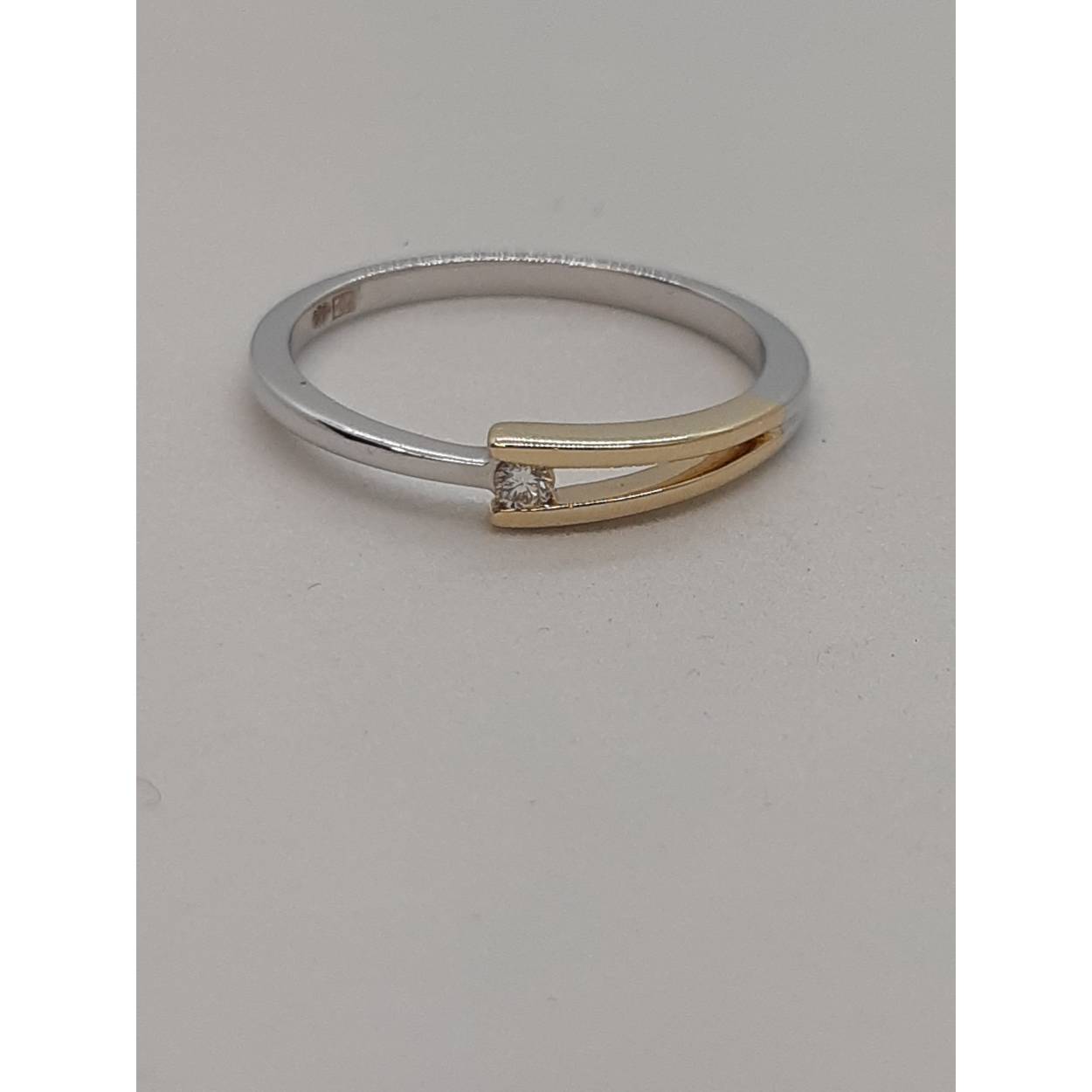 Deze BREA-0002685 ring is een schitterend design gemaakt van 14-karaat bicolor goud. De ring bevat een enkele ronde SI1 pure H-kleur diamanten van 0,028 crt. Perfect voor een elegante look. Draag hem solo of combineer met andere sieraden voor een verfijnde stijl. Ideaal voor speciale gelegenheden of dagelijks gebruik. Maat 54.