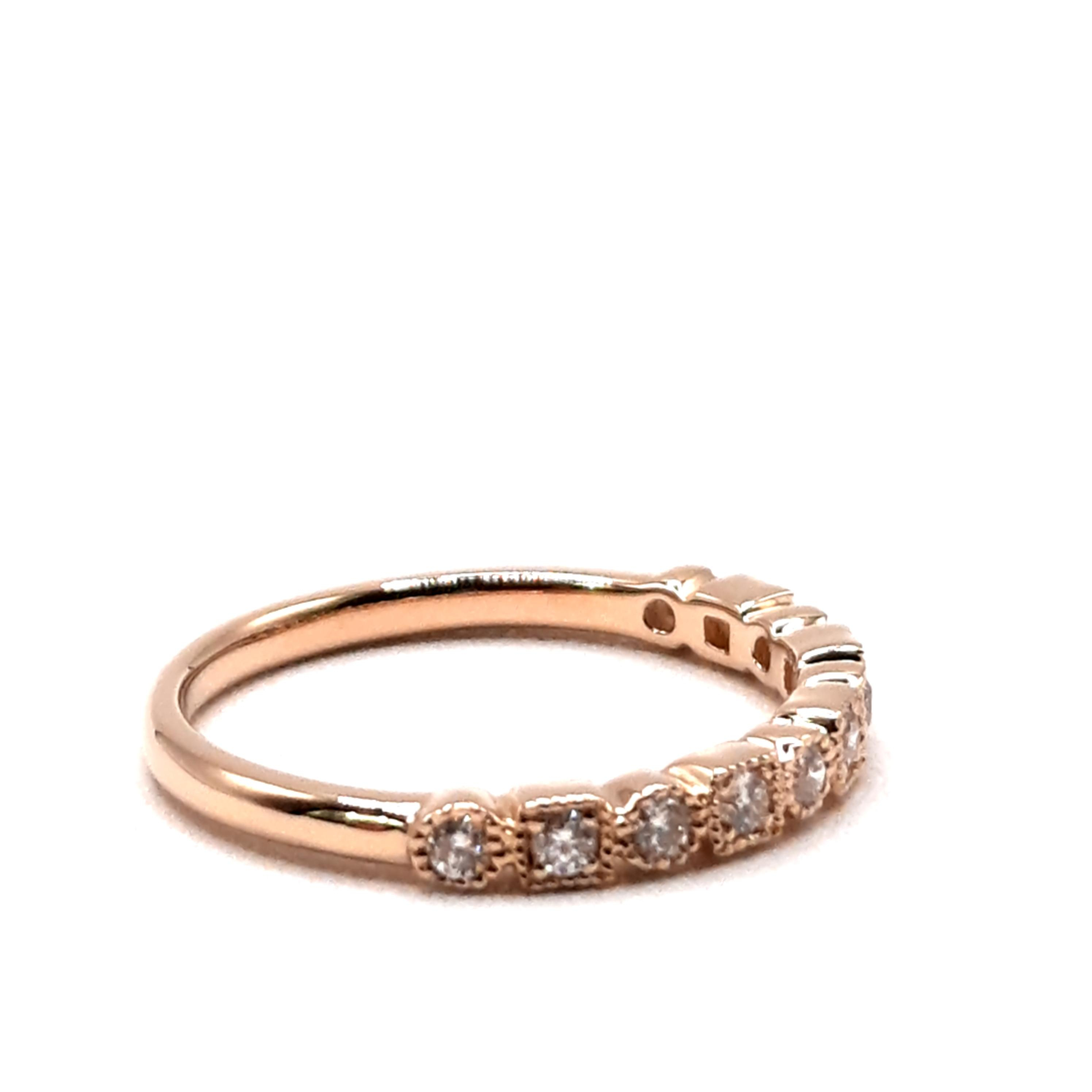 Deze prachtige Diamant Ring in 14K goud (modelnummer 0002504) is een stijlvol en verfijnd sieraad. De ring bevat 11 briljant geslepen diamanten van SI1 zuiverheid en G-kleur. Perfect voor dagelijks gebruik of speciale gelegenheden. Draag hem aan je ringvinger voor een klassieke uitstraling of combineer met andere ringen voor een moderne touch.