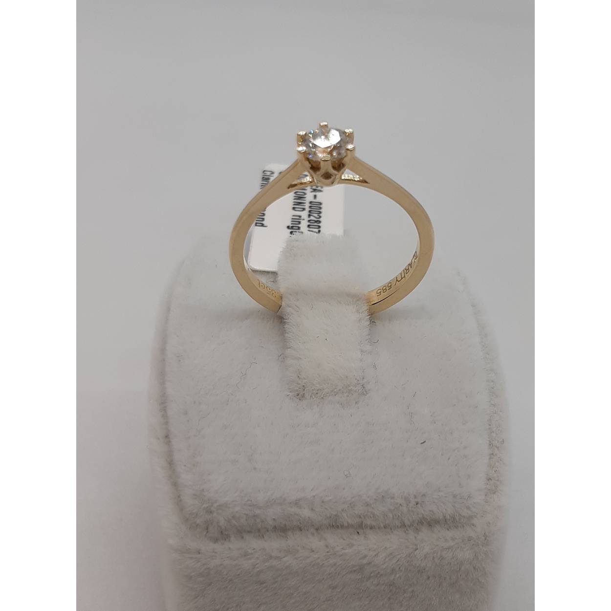 Deze Diamanten Verlovingsring, modelnummer BREA-0002807, is een luxueus juweel van goud met een schitterende afwerking. De ring bevat een ronde diamant van 0.35 karaat, met SI1 zuiverheid en F kleur. Gemaakt van 14-karaats goud, maat 54. Draag deze ring als symbool van liefde en elegantie, perfect voor een verloving.