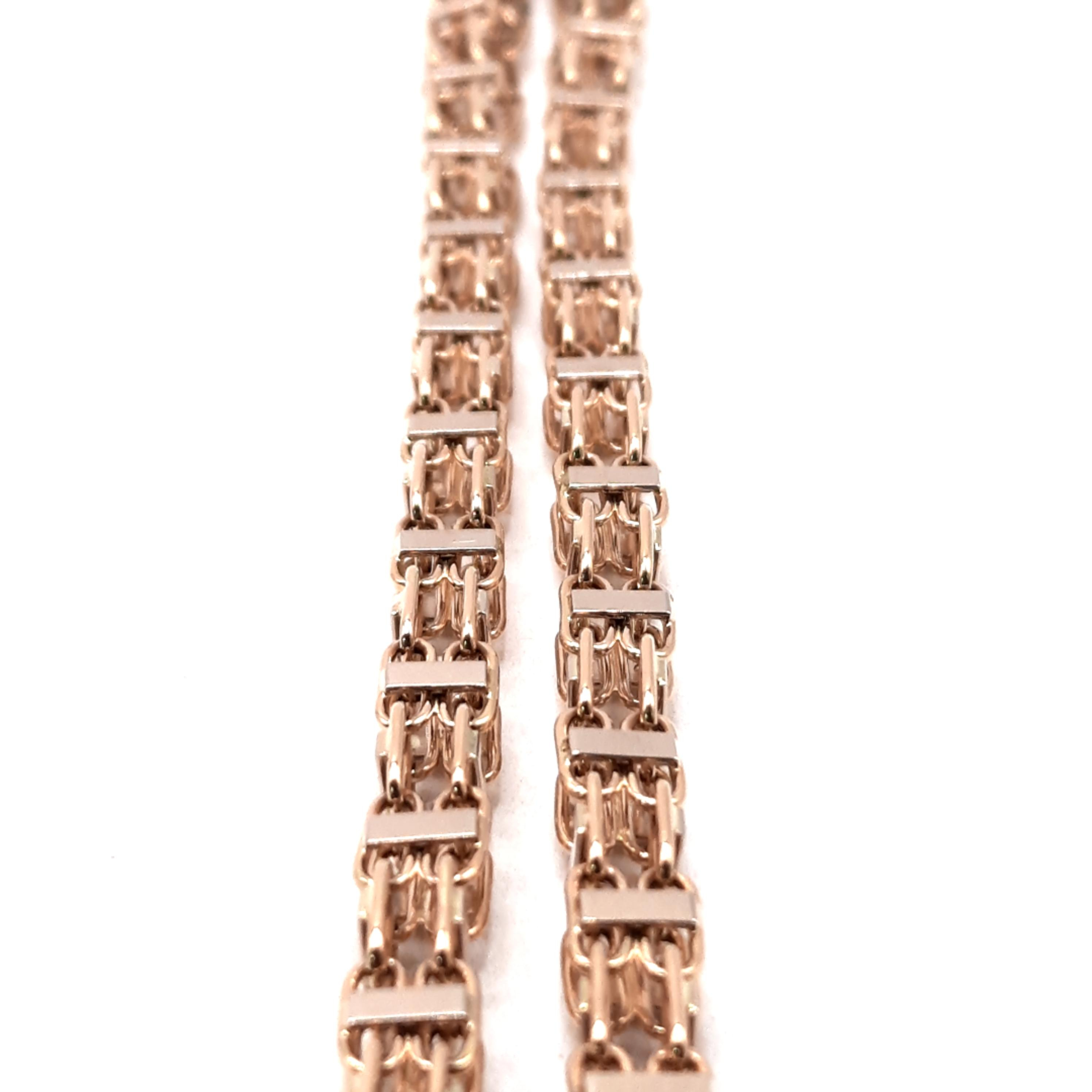De gouden Magnum ketting (modelnummer 0002285) is een prachtige 14-karaats gouden halsketting met een indrukwekkende lengte van 70 cm en een breedte van 6,2 mm. Het weegt 39,82 gram en heeft een elegante goudkleur. Perfect om te dragen als statement stuk op een eenvoudige outfit of bij speciale gelegenheden.