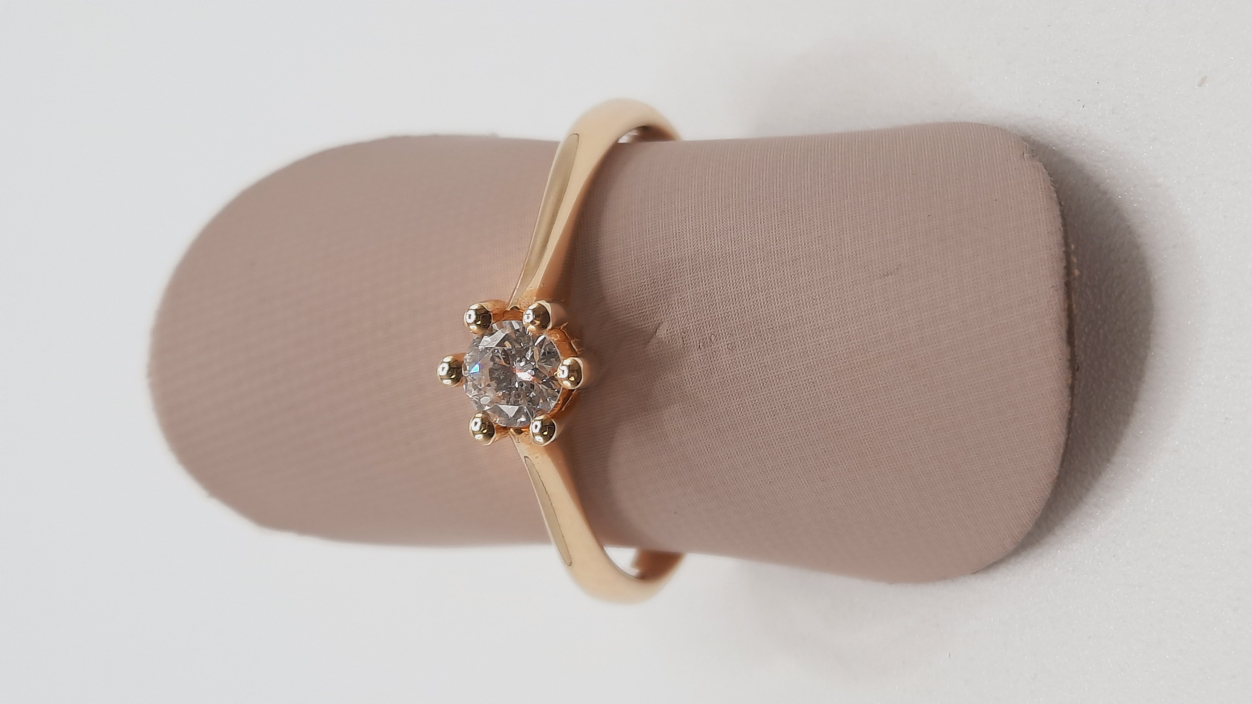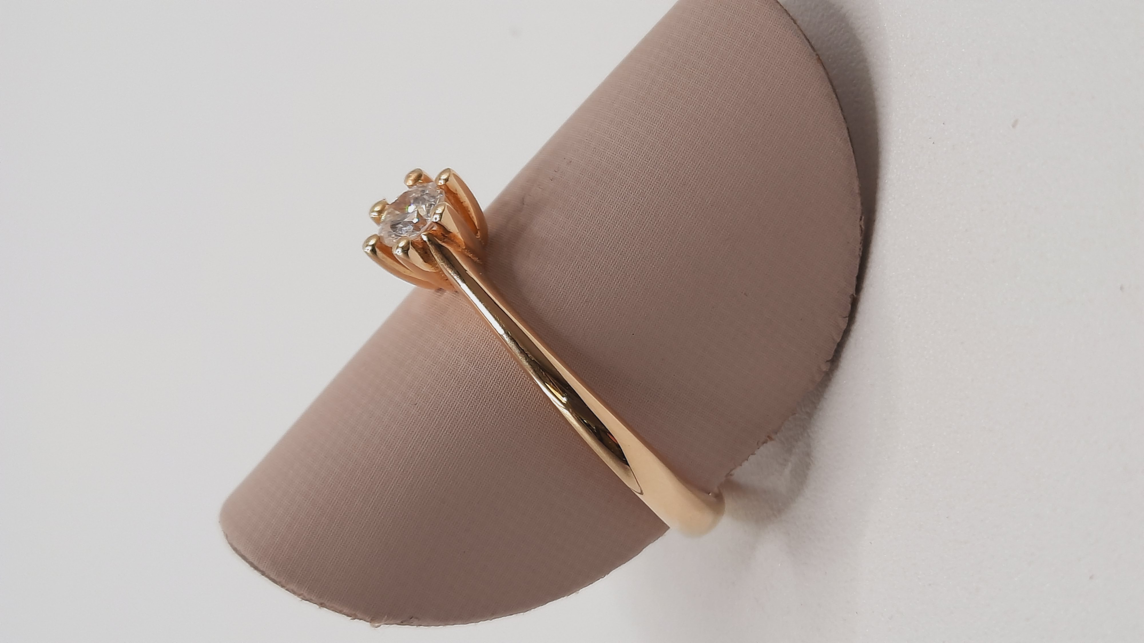 Product 0002320 is een verfijnde verlovingsring van 14kt goud met een briljante geslepen diamant van 0,19 karaat. De diamant heeft een SI1 zuiverheid en F kleur, wat zorgt voor een prachtige schittering. Deze stijlvolle gouden ring in maat 54 is perfect voor elke gelegenheid en wordt aanbevolen om gedragen te worden aan de ringvinger van de linkerhand.